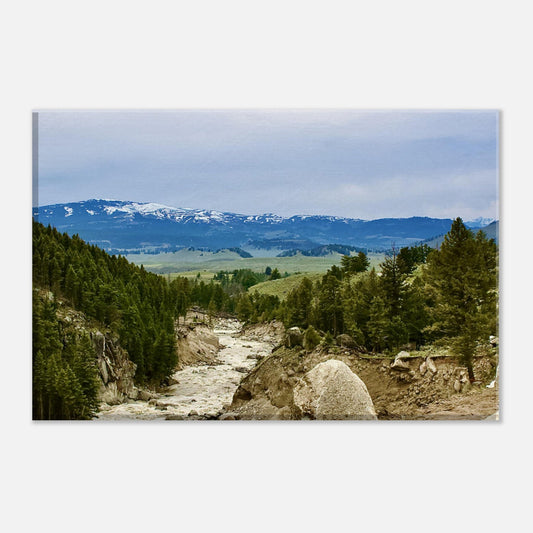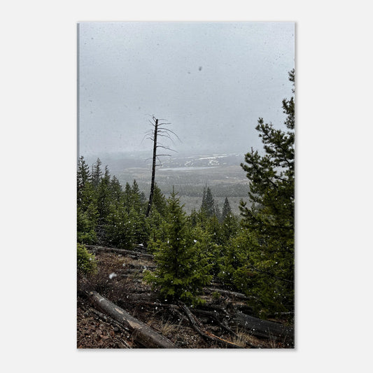 Overlooking Yellowstone national park during a snowstorm on Canvas